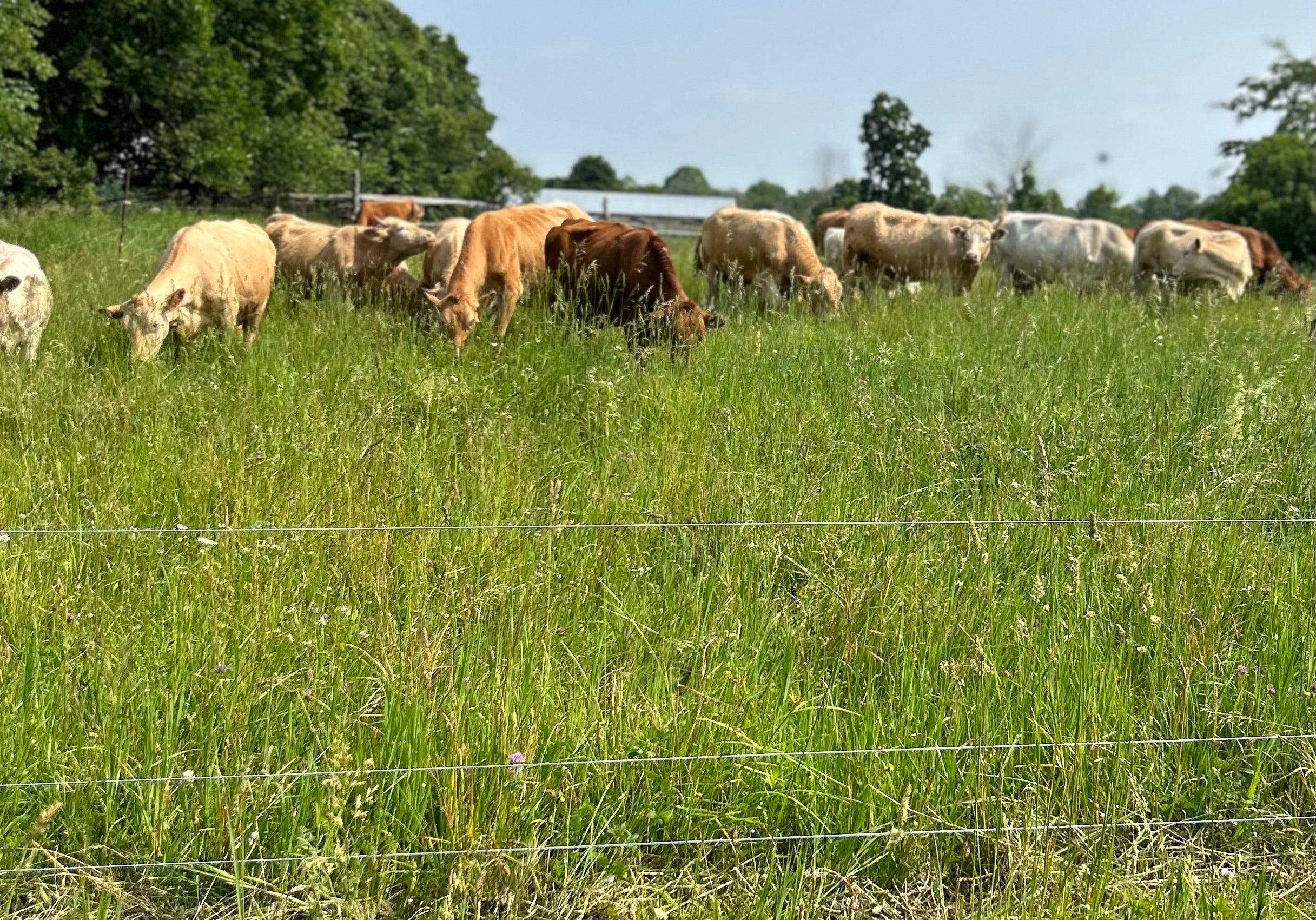 We take pride in raising a variety of animals—including cows, pigs, goats, chickens, and turkeys—using pasture-based, regenerative practices. Our animals live the way nature intended: grazing, rooting, and foraging on open pasture. In the summer, you’ll often spot our cows, pigs, and goats roaming the same lush fields, each species naturally drawn to different types of vegetation—kind of like the Serengeti. Our cows prefer the taller grasses, while the pigs turn over the soil in search of roots and grubs, and the goats tackle the brambles and brush. Together, they help us regenerate the land, building healthier soil and creating a thriving, balanced ecosystem.